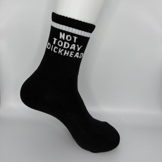 • Not today dick head socks funny socks gym socks white socks gift ideas birthdays Christmas gifts quotes rude socks dickhead